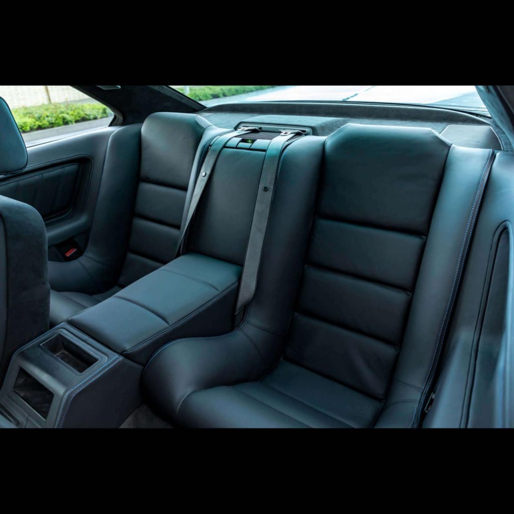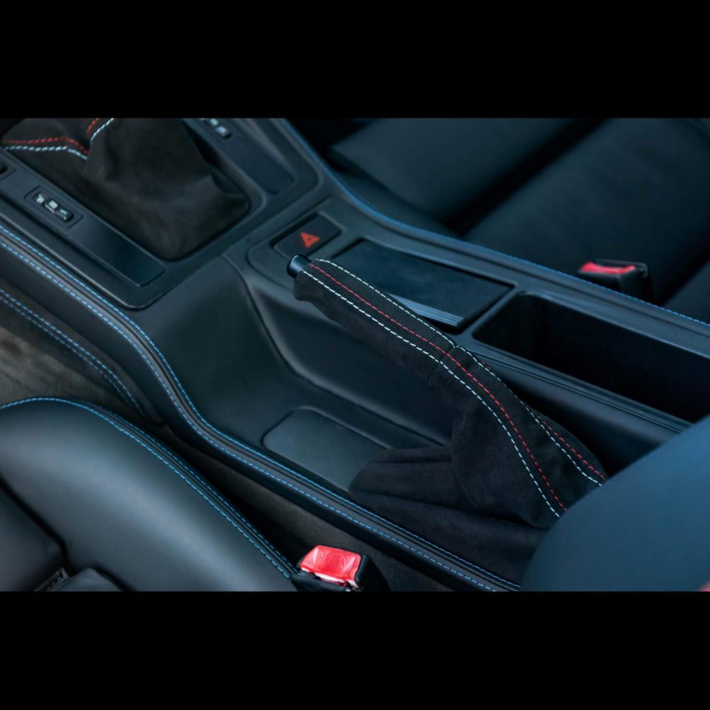 Du côté esthétique, l'art savant du restomod consiste à moderniser sans trahir la ligne et l'aspect global de l'époque, sinon cela n'a aucun intérêt. Les passages de roues sont les hôtes de jantes en alliage MANHART Concave One, mesurant 9×20 et 10,5×20 pouces, chaussées de pneus Continental Sport Contact 7 en 255/30R20 et 295/25R20. L'amélioration touche aussi les freins avec de puissants étriers fixes à 4 pistons et des disques de frein perforés de 340 millimètres sur l'essieu avant, clairement visible à travers les roues filigranes à doubles rayons.