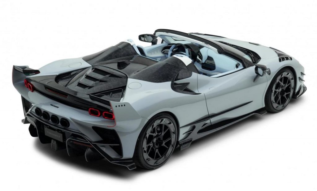 Mansory et le design, c'est un peu votre petit enfant qui a trouvé une boîte de maquillage et qui se lâche sans surveillance. Le Mansory F9XX Celestial Storm impressionne (et fait peur aussi) de l'extérieur avec des prises d'air agrandies dans le tablier avant, qui assurent à tout moment un flux d'air frais vers les radiateurs hautes performances. Le nouveau becquet avant est élargi, afin d'obtenir une force d'appui augmentée sur l'essieu avant. Latéralement, les jupes latérales sont la signature indubitable du tuner allemand. Les nouveaux composants de carrosserie en fibre de carbone agissent également comme des conduits d'air, fournissant de grandes quantités d'air frais à la fois au groupe motopropulseur et au nouveau capot en fibre de carbone et freins arrière. Mais c’est moche.