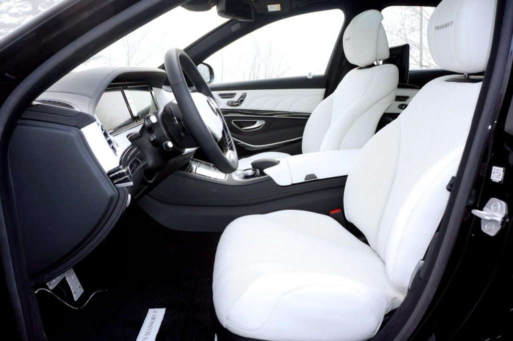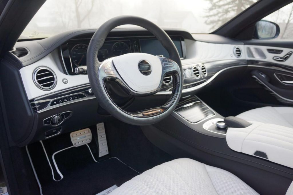 En parallèle, le préparateur Mansory recommande la monte de pneus Vredestein de 255/30 et de 295/25. En complément ? Jantes alliage de 22″, système d’échappement sport en acier inoxydable, capot inédit, nouvelles jupes latérales, spoiler avant en fibre de carbone, coques de rétroviseur, diffuseur, leds, habitacle tendu de cuir blanc et surpiqures, boiseries, inserts fibre de carbone et encore seuils de portes rétroéclairés, pédalier alu, tapis de sol, etc, etc.