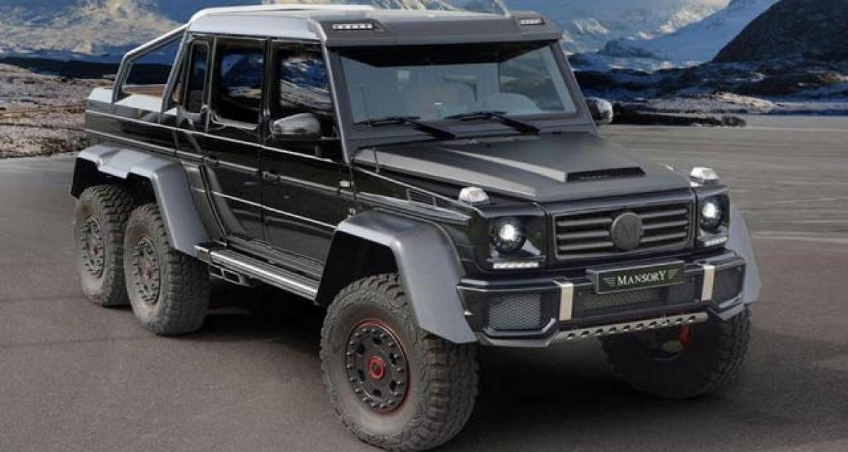 Mansory avance son programme pour la bête. Tablez ici sur une indécente puissance portée à 840 ch quand le couple, limité électroniquement, culmine à 1000 Nm (bielle, nouveaux pistons, nouveau vilebrequin, etc). Mansory n’en reste bien évidemment pas là. Ainsi ce G63 AMG 6×6 adopte nouveaux phares, nouveau capot et nouvelle calandre flanquée du logo maison en remplacement de la traditionnelle étoile.