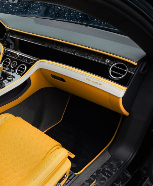 Sous son apparente sobriété nominale, cette Bentley revue par Mansory est tout sauf discrète. La carrosserie, peinte dans une teinte moutarde saisissante, se démarque immédiatement sur la route. Loin des nuances classiques habituellement choisies par les propriétaires de modèles de prestige, ce coloris accentue le contraste avec les éléments en carbone forgé qui recouvrent désormais de nombreuses parties de la carrosserie.