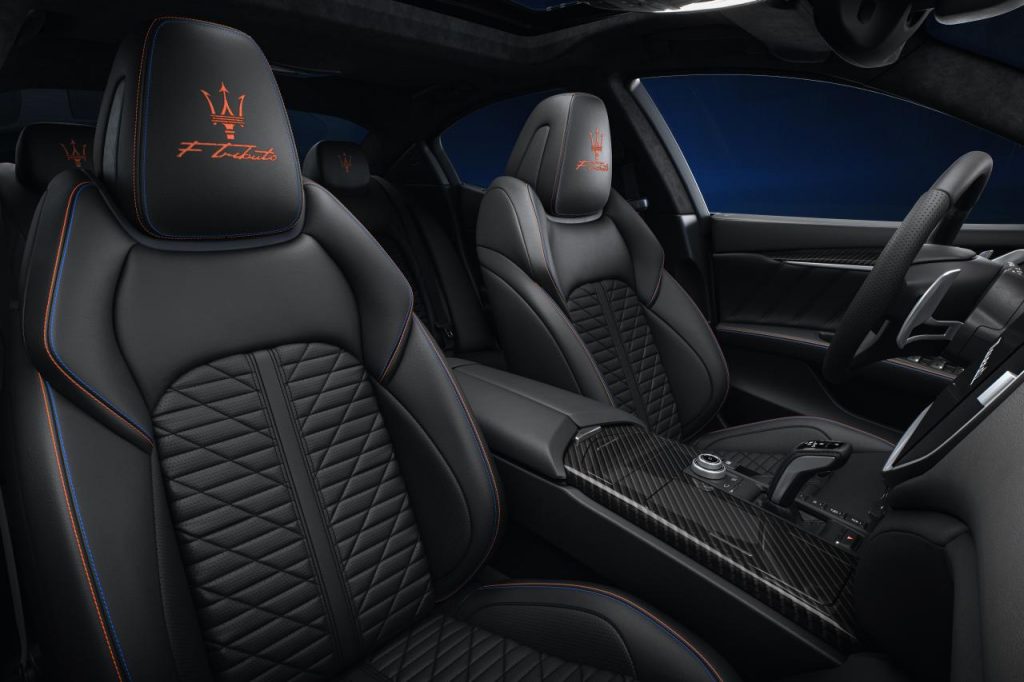 L'édition arbore des détails accrocheurs et une esthétique sportive. Arancio Devil est un orange saturé spécial, présenté comme "une combinaison d'énergie vibrante et d'audace", pour rappeler le surnom de Maria Teresa, "la diablesse". A l'inverse, le gris s'inspire de la piste, véritable "maison" de Maserati, où le Trident a réalisé ses plus belles performances.
