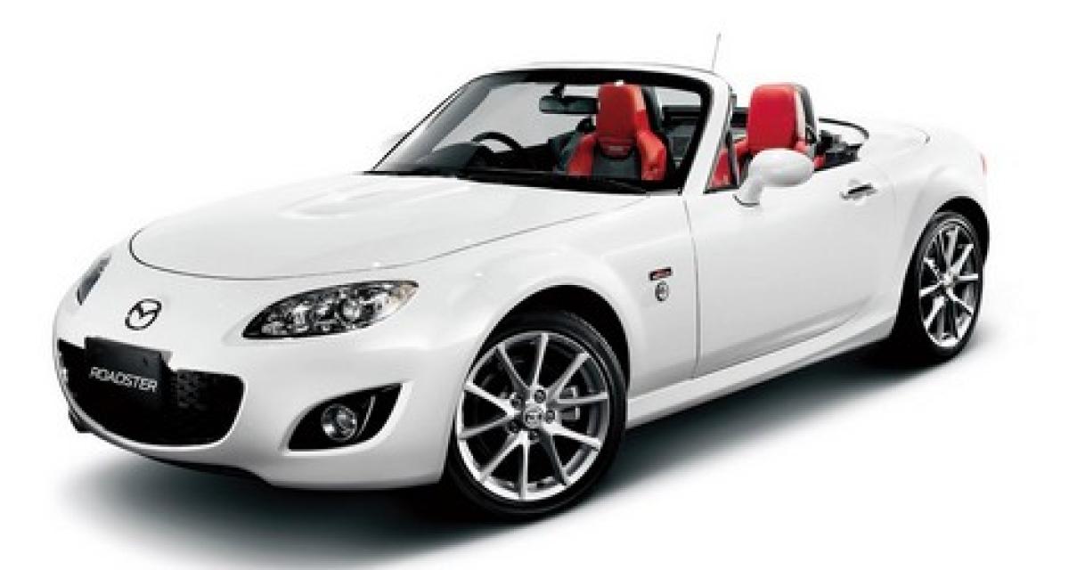 Mazda n’en finit pas de fêter les 20 bougies de la MX5. Au Japon (où elle s’appelle tout simplement »Roadster »), elle a droit à une série spéciale « 20th anniversary ».