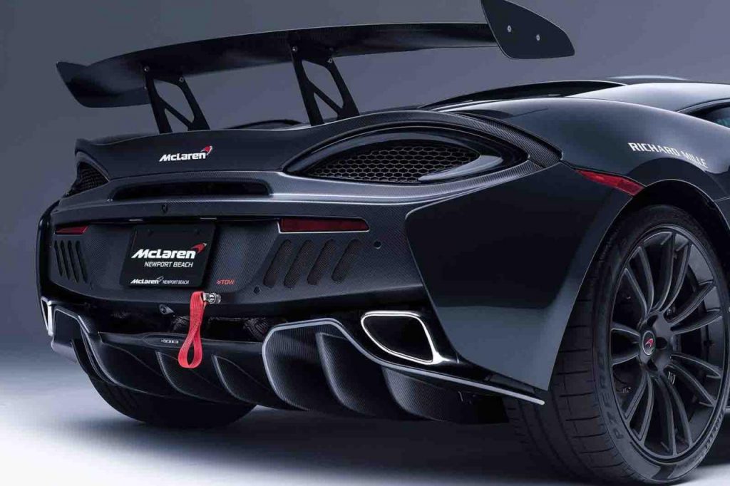La MSO X:10, comme son patronyme peut le laisser entendre, est limitée à dix exemplaires. Parmi les éléments qui la distinguent d’une 570S et la rapprochent d’une GT4, on retiendra par exemple : un aileron arrière générant un appui supplémentaire de 100 kg, une prise d’air sur le toit, des sorties d’échappement en titane, des pneus Pirelli P Zero Corsa, des entrées d’air sur le capot avant, des harnais à 6 points, un dépouillement de l’habitacle.