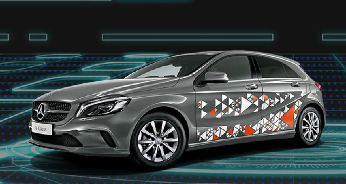 Sur le fond, c’est juste une modification du configurateur. Il est ainsi désormais possible de prendre une teinte argent ou blanc associée à une frise Perfume (cf. photo du haut.) Elle est facturée 200 000 yens (1 500€.) Ce qui met la A 180 à 3 605 070 yens (27 700€), hors option.