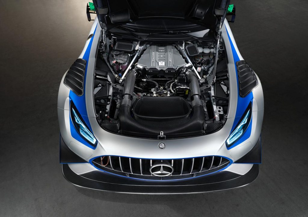 L'aileron arrière plus large est affublé d’un système de réduction de la traînée (DRS), inspiré de la Formule 1 et du DTM, actionnable d’un simple bouton. Pour maintenir l'équilibre aérodynamique, les éléments actifs du plancher avant sont également déployés. En cas d'accélération ou de décélération latérale, les éléments actifs reviennent immédiatement à leur position d'appui d'origine. La vitesse maxi grimpe à 315 km/h contre 290, malgré un niveau d'appui élevé. Le système de freinage exclusif hautes performances s'inspire également de la Formule 1. Contrairement aux disques en acier obligatoires dans le règlement GT3, les disques de frein du modèle spécial sont en carbone.