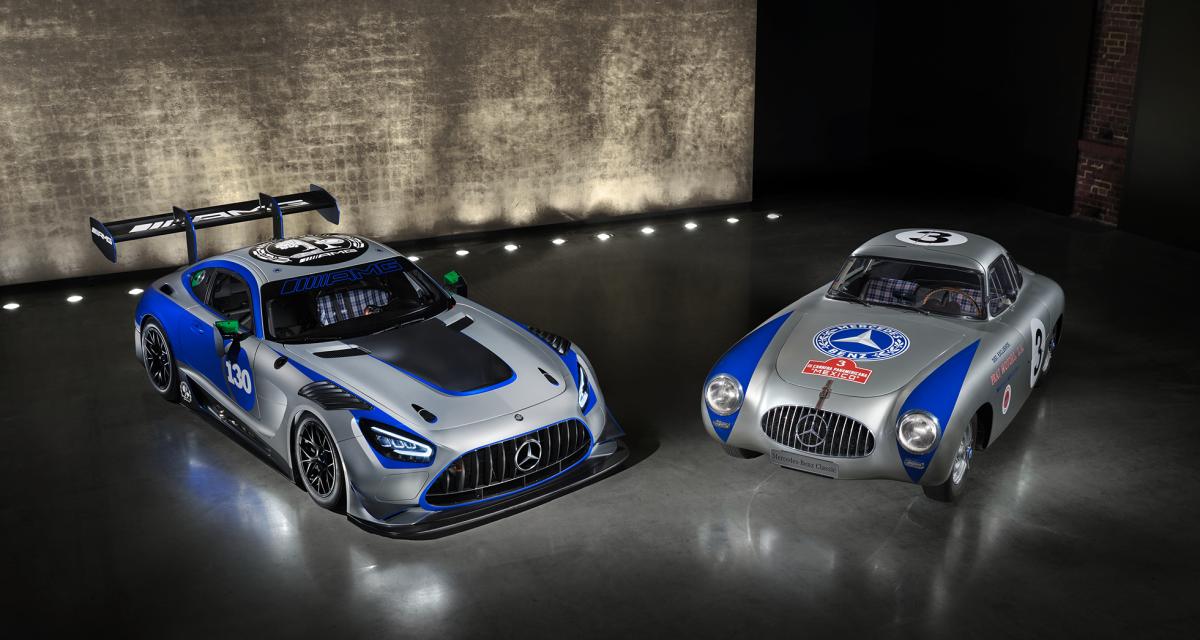 La Mercedes-Benz 300 SL W 194 de 1952 a servi d'inspiration pour le design du modèle anniversaire en édition limitée. Des éléments stylistiques classiques de la première voiture de course fermée de la marque caractérisent l'apparence extérieure de la Mercedes-AMG GT3 Edition 130Y Motorsport. La peinture spéciale dans une couleur argentée exclusive rappelle évidemment les Flèches d'Argent. Les losanges bleus sur les ailes avant et le cadre coloré de la calandre font référence aux Mercedes pilotées en 1952 par Hans Klenk et Karl Kling dans la Carrera Panamericana et par Hermann Lang et Fritz Riess aux 24 Heures du Mans et qui portaient des éléments de design similaires. Des jantes en magnésium de 18 pouces optimisées en termes de poids et l'utilisation extensive d'éléments en carbone font le lien avec les voitures de sport de course de l'ère moderne, ainsi qu'un écusson AMG marquant sur le toit.
