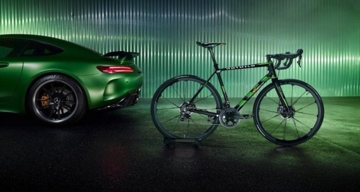 Comme la voiture, ce vélo n’est pas accessible à toutes les bourses puisqu’il faudra débourser 7 109 euros pour en faire l’acquisition. A ce tarif, le Rotwild R.S2 dispose d’un cadre en carbone et d’une paire de roues Crankbrothers Cobalt 11 également en carbone. Et comme l’AMG GT R, le vert est de rigueur.