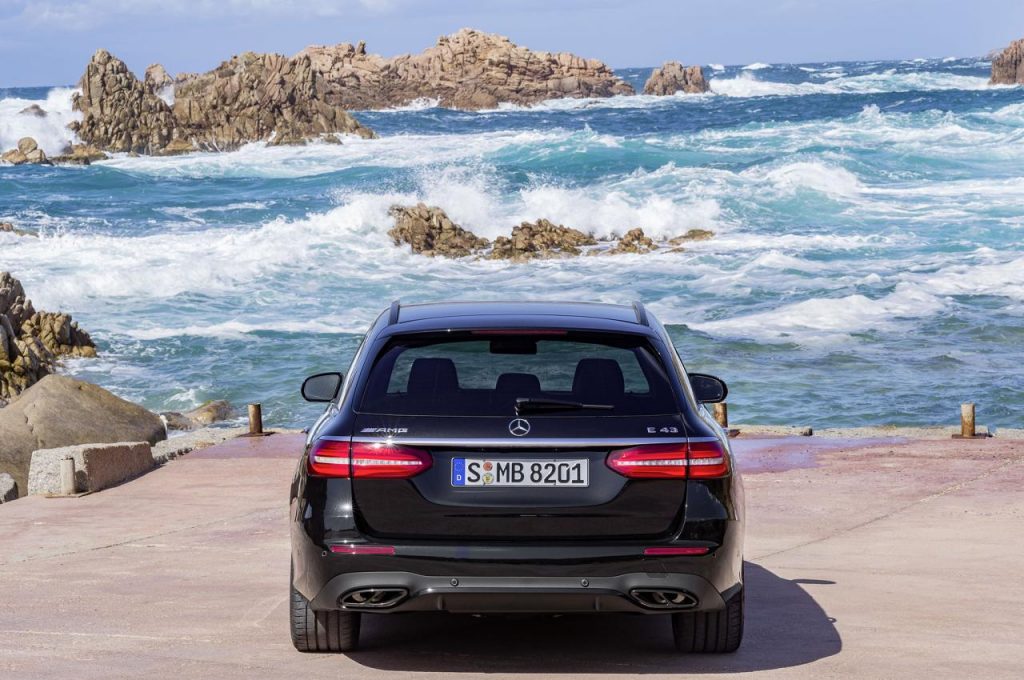 Comme Mercedes l’a déjà appliqué sur la Classe-C, le break Classe-E adopte un dessin un peu plus profilé à l’arrière, combiné aux feux horizontaux qui confèrent une allure moins austère. Comme la berline, la E se propose avec la calandre classique ou la calandre ornée de l’imposante étoile, selon les versions.