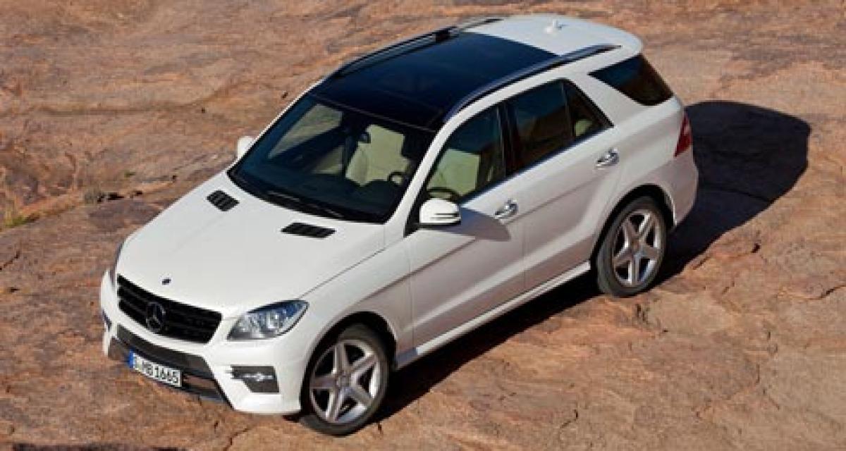 Les motorisations s’alignent sur le reste de la gamme Mercedes avec l’arrivée du 4 cylindre diesel 2.1l pour la ML250 Bluetec, et ses 204 ch et 500 Nm. Le V6 3.0 diesel de la ML350 Bluetec annonce 258 ch et 620Nm. Au lancement, le seul moteur à essence sera le V6 3.5 de 306 ch et 370 Nm. Tous sont associés à la boîte automatique 7 rapports 7G-Tronic.