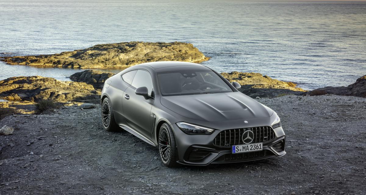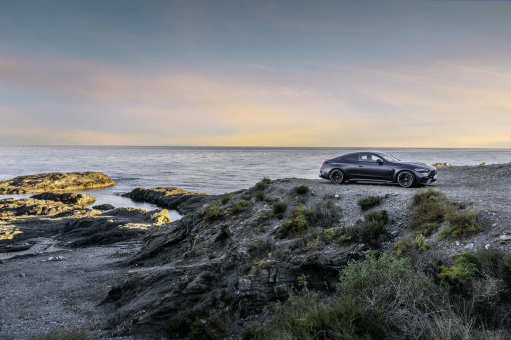 Ce coupé se distingue par son pare-brise fortement incliné, le toit allongé qui s'incline vers l'arrière et une partie avant inclinée façon "nez de requin", avec ici la calandre spécifique à AMG et les projecteurs DIGITAL LIGHT avec fonction de projection sont disponibles des série. Ils sont dotés d'ellipses d'éclairage diurne et d'un éclairage bleu à la base des phares, ce qui renforce l'aspect dynamique du véhicule.