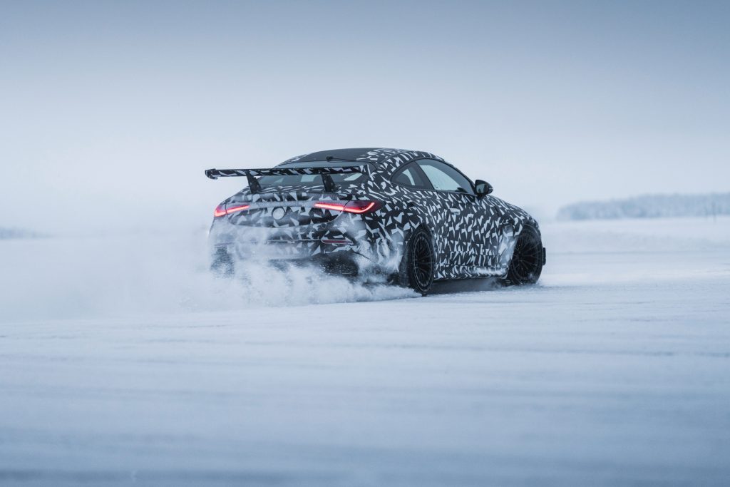 Le second modèle sera basé sur le coupé CLE. À en juger par les premières images des prototypes, l’esprit des AMG Black Series sera au rendez-vous. En sous-titre, on annonce aussi le retour très attendu d’un moteur V8. Lors des derniers renouvellements des familles C et E, Mercedes a misé sur le downsizing, en dotant ses versions sportives de moteurs à 6, voire 4 cylindres. La puissance est bien là, mais les clients se sont enfuis. À Stuttgart, on a donc décidé de corriger le tir et un moteur V8 est de retour…