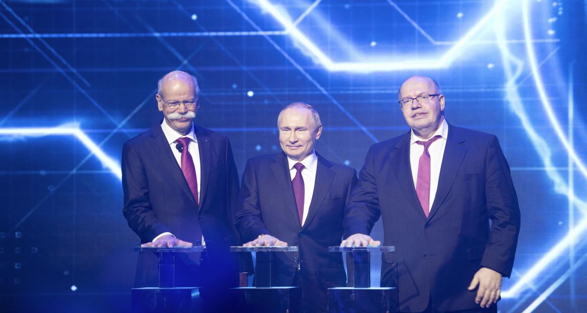 La cérémonie d’inauguration a pris un tour très politique, avec la présence bien entendu de Dieter Zetsche, patron de Daimler, du ministre allemand de l’économie Peter Altmaier et son homologue russe Denis Manturov, et surtout de Vladimir Poutine.