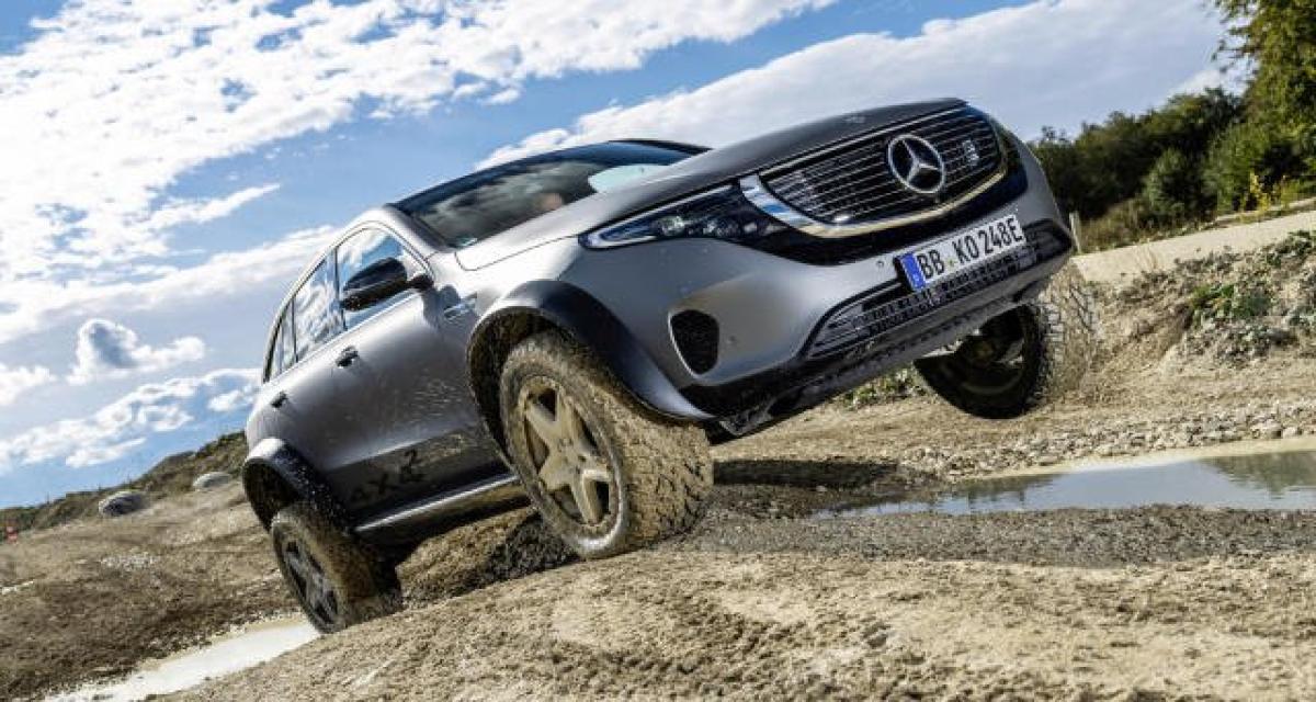 Quelle mouche a bien pu piquer Mercedes ? La firme de Stuttgart a décidé de créer un véhicule tout-terrain dérivé de son SUV électrique le EQC. C’est le troisième véhicule de la famille « 4×4² » après un G500 4×4² en 2015 (produit en série) et un concept « E 400 All-Terrain 4×4² ». Ici, Mercedes prend un EQC 400 4Matic et le transforme en « crapahuteur ».