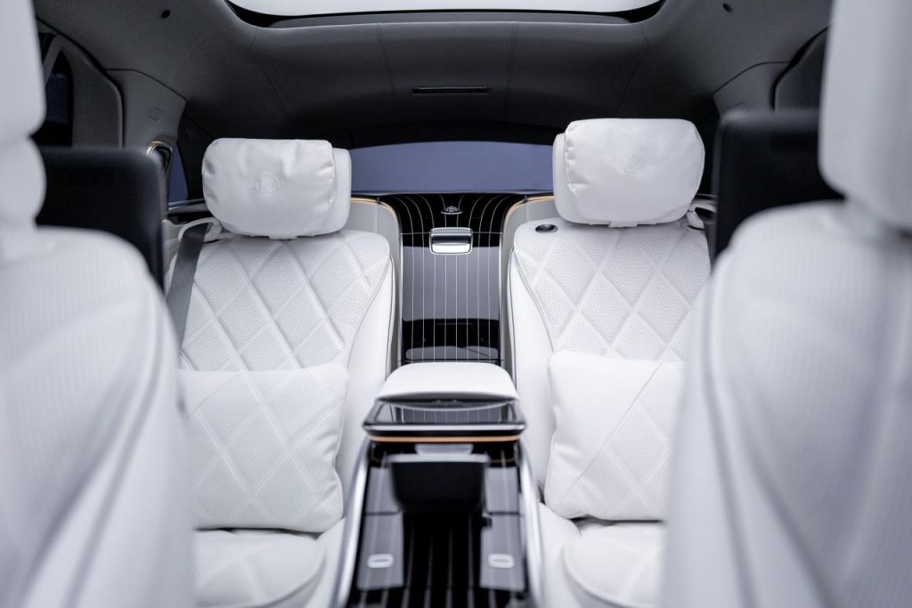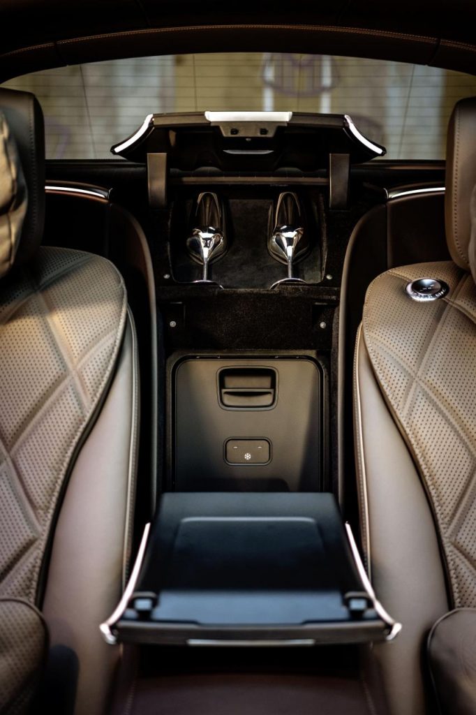 Dans leur écrin, à l’insonorisation accrue, les passagers peuvent respirer l'air parfumé du pack Air Balance standard, écouter le système audio Burmester 4D à 15 haut-parleurs, déguster des boissons réchauffées par des porte-gobelets thermiques et signer des documents importants à la lueur d'une lampe design installée dans chaque montant C ou les 253 LED contrôlables individuellement qui forment le système d'éclairage ambiant actif.