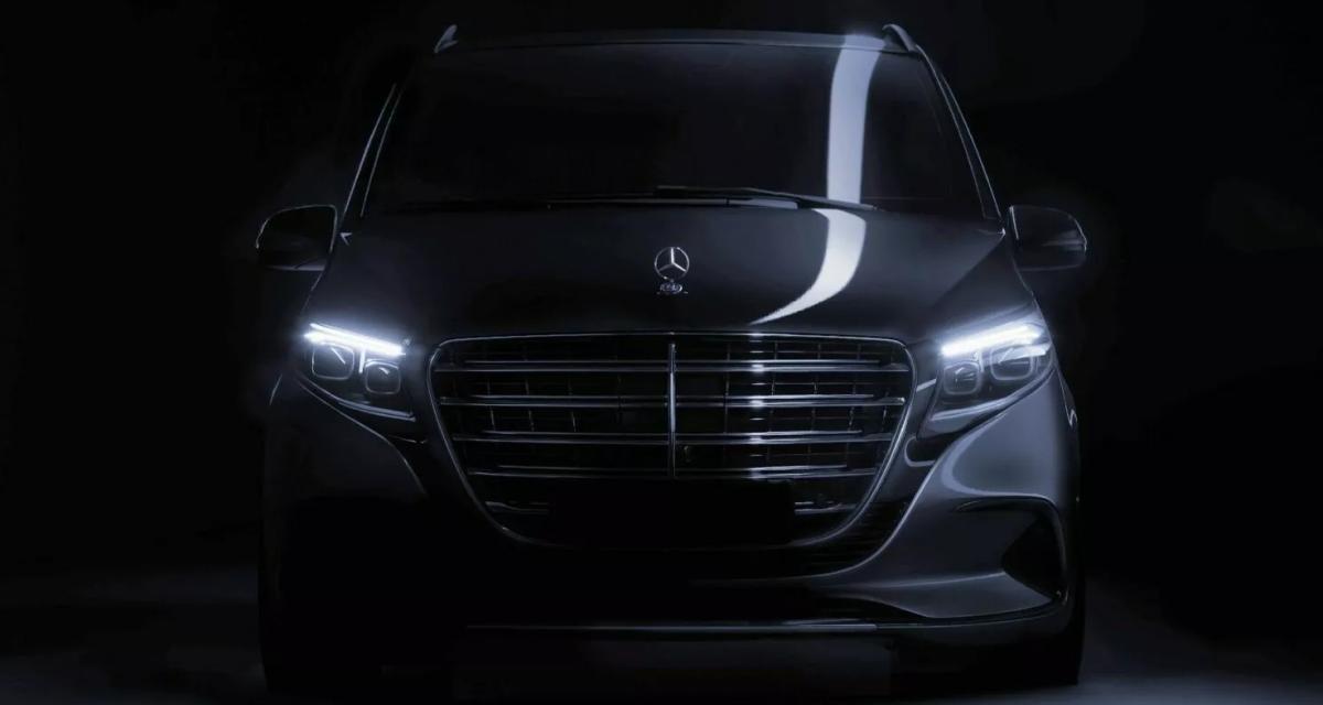 La seule photo présentée montre l'avant de la Mercedes-Benz Classe V mise à jour. On remarque une calandre plus grande, surtout en verticalité et plus musclée, accompagnée de phares à LED révisés, d’un nouveau pare-chocs avant et de prises d'air de style AMG. Dans l'ensemble, les changements lui donnent une apparence plus massive et imposante.