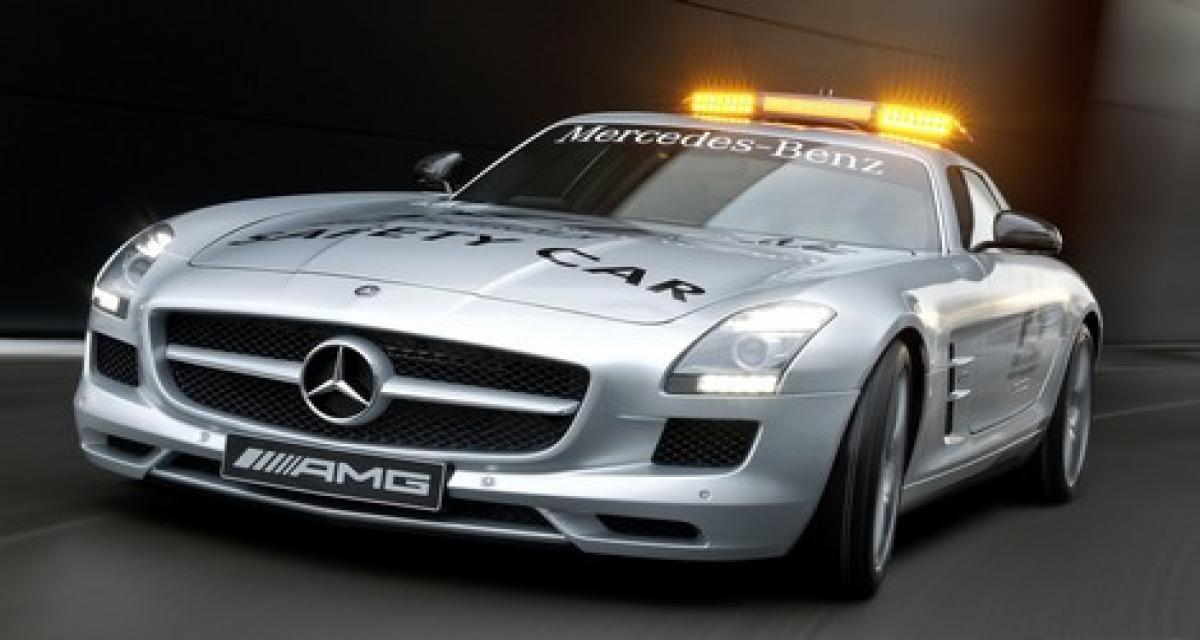 Nouvelle saison de F1, nouveau Safety Car! Bye bye, la SL63 AMG; bonjour la SLS AMG. Avec ses 571ch, c’est le plus puissant des Safety Car jamais utilisé en F1. Il est toujours piloté par Bernd Mayländer, secondé par Pete Tibbetts, le représentant FIA. Notez aussi que le Medical Car reste une Mercedes C63 AMG Estate.