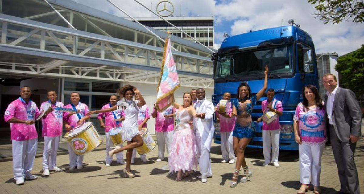 Éternelle rivale de Rio, São Paulo possède son propre carnaval. C’est le « Sambodromo Anhembi ». Mercedes Trucks en est le partenaire officiel. L’occasion de rappeler que depuis 2012, l’Actros est produit au Brésil.Le défilé est composé de diverses écoles de Samba. Mercedes sponsorise la « Escola de Samba Sociedade Rosas de Ouro ». En plus d’un soutien financier, le constructeur lui prête 6 camions (des Atego, Axor et Actros.)