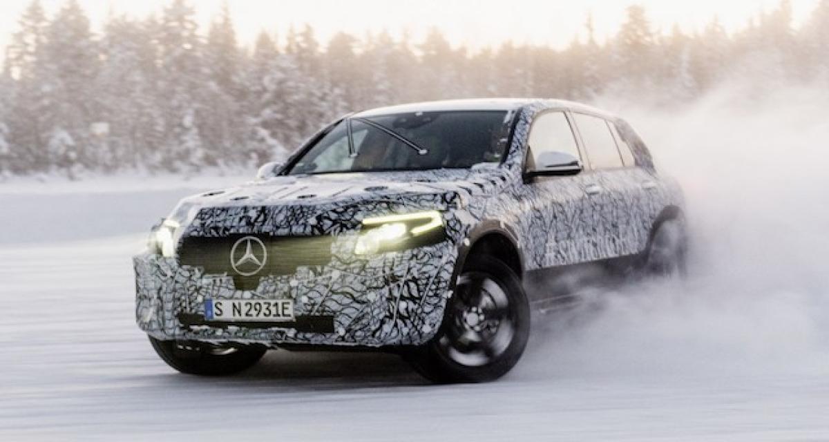 Évidemment très camouflé, le fut EQC révèle néanmoins sa signature lumineuse inédite ainsi que sa calandre frappé d’un imposante étoile à fond noir. La révélation du EQC très camouflé à quelques jours du salon de Genève suggère que le premier SUV ne sera pas dévoilé dans sa forme définitive au salon genevois.