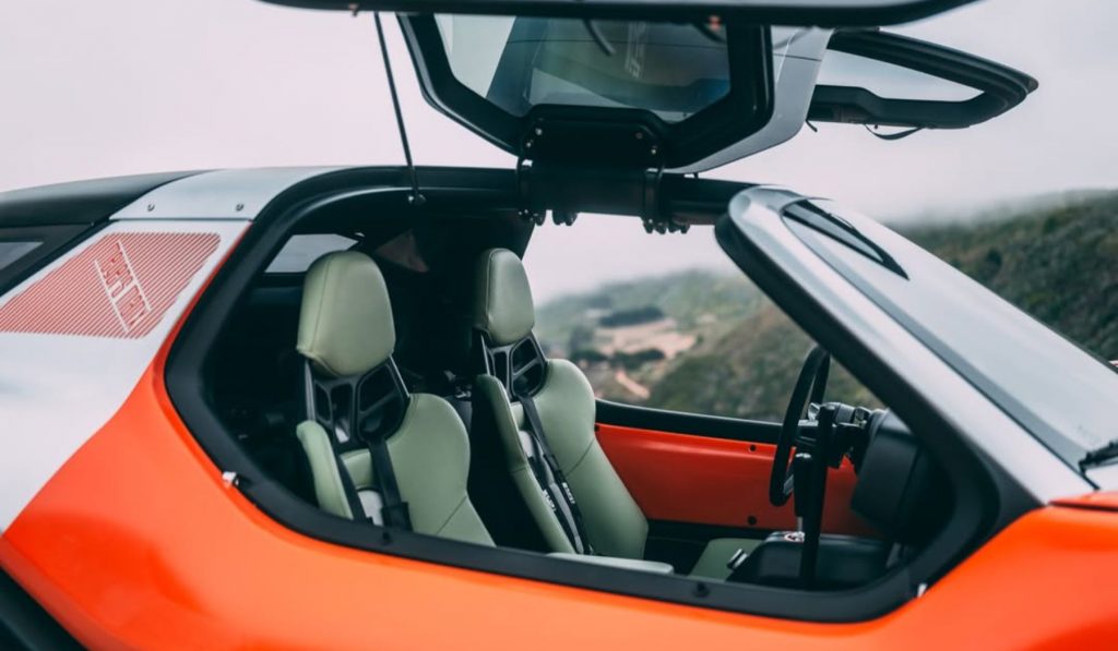 Le LFG conserve l’allure générale d’un buggy avec ses ailes hautes (héritées de la Schwimmwagen) ou ses phares sortant de la carrosserie (merci Kubelwagen). Mais hormis ce genre de clin d’œil, on ne peut pas vraiment parler de style rétro tant l’engin semble actuel. L’esprit buggy a en partie disparu, puisqu’il s’agit d’un coupé, avec des portes papillon. Le but étant d’engager la voiture dans la prochaine Baja 1000, impossible de rester à découvert. Rappelons au passage que Bruce Meyers a remporté la première édition de cette course désormais classique.