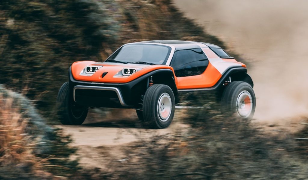 Le buggy historique est récemment revenu à la vie avec le Meyers Manx 2.0. Légèrement actualisé, mais fidèle à l’engin original créé par Bruce Meyers dans les années 60. L’homme derrière cette renaissance, Philip Sarofim, a voulu aller plus loin. Son idée ? Imaginer un buggy de 2025 dans un monde qui connait les Ford F150 Raptor ou les Prodrive Hunter… Et il s’est fait aider par son ami Richard Tuthill pour rendre le résultat encore plus explosif.