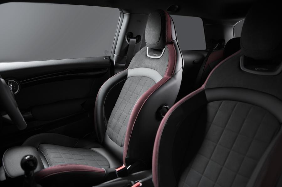 Dans l’habitacle, les sièges John Cooper Works sont agrémentés d’un bandeau rouge courant sur les côtés de l’assise et du dossier. Le volant d’origine de la One est remplacée par un homologue en cuir perforé, alors que tableau de bord et contre portes sont décorés avec les placages Carbon Black. Et question technologie, la 1499 GT embarque également le système d’infodivertissement Mini Connected.