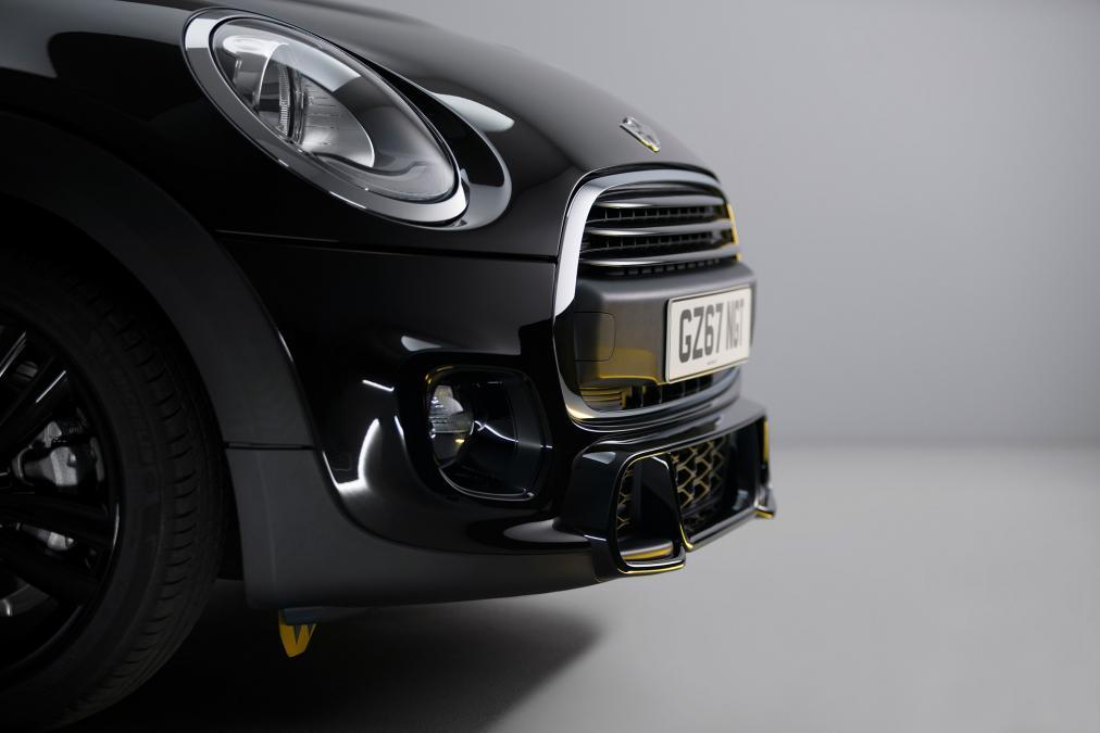 A l’extérieur, la Mini 1499 GT s’équipe du pack esthétique JCW. Les boucliers avant et arrière ajourés, les jupes à excroissances, l’aileron et les clignotants blancs sont ainsi de la partie. Et tandis que les jantes adoptent un ton noir brillant, la carrosserie quant à elle pourra revêtir soit le noir (Midnight Black), soit le blanc (Pepper White). Dommage que l’orange de son ancêtre ne soit pas disponible… Enfin, des bandes estampillées ‘ Mini 1499 GT’ au design identique à celles de la 1275 GT viennent courir en bas des portières. Elles se détacheront en doré sur une carrosserie noire, et en noir sur une blanche.