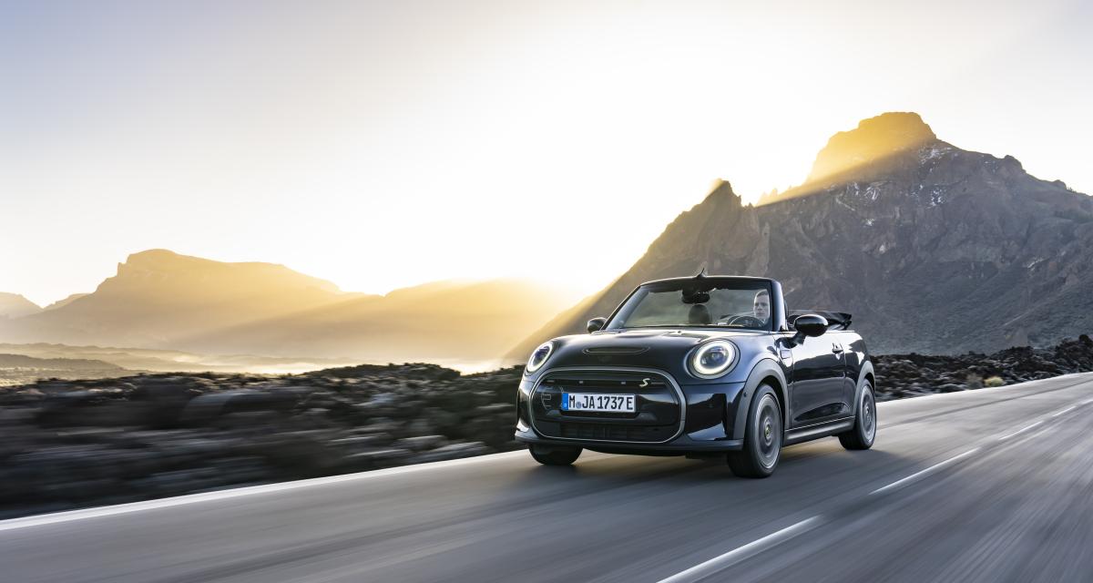 Avec une longueur de 3 863 mm, un empattement de 2 495 mm, une largeur de 1 727 mm et une longueur de 2 495 mm, les dimensions restent inchangées par rapport aux MINI Cabrio à moteurs thermiques, tout comme le volume de coffre qui conserve sa capacité de 160 litres. Le moteur électrique de 135 kW (184 ch) se combine à une autonomie chiche de 201 kilomètres selon le cycle WLTP fournie par la petite batterie de 32,6 kWh. La capote MINI Yours avec motif Union Jack peut être ouverte ou fermée électriquement jusqu'à 30 km/h ou être ouverte comme un toit coulissant à des vitesses plus importantes.