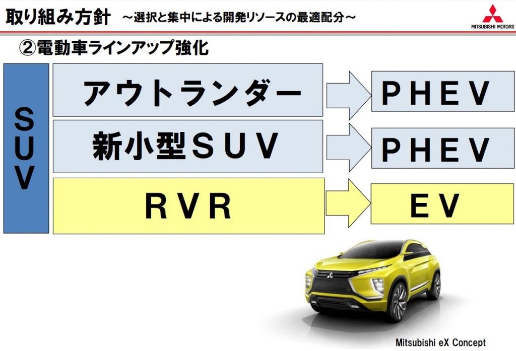 Parmi ces nouveautés ? Quelques unes sortent du lot. On peut notamment pointer la prochaine version zéro émission du futur ASX (Outlander Sport ou RVR selon les marchés) ou encore une autre version hybride rechargeable (PHEV dans le texte originel) du SUV en complément de l’Outlander du même genre déjà distribué (pas encore sur le marché américain où son introduction vient une fois encore d’être retardée).