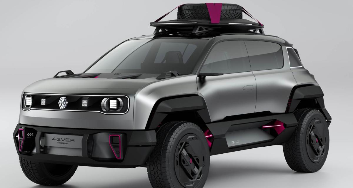 « Pour le reste, Renault a conceptualisé son véhicule en lui mettant de gros élargisseurs d’ailes, des boucliers marqués (et surlignés de fuchsia !). La 4EVER est surélevée car elle rend hommage au 4L Trophy qui envoie de vénérables mamies 4L dans le désert depuis 25 ans ».