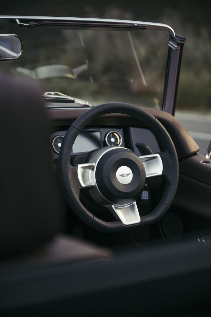 Ah si, le hard top en carbone coûte 4 194 livre (teinte de la voiture). Et si on veut un ciel de toit en mohair noir en prime, c’est 6 594 livre. De quoi faire passer la douloureuse de 125 000 € à plus de 200 000 € tout compris (malus aussi).
