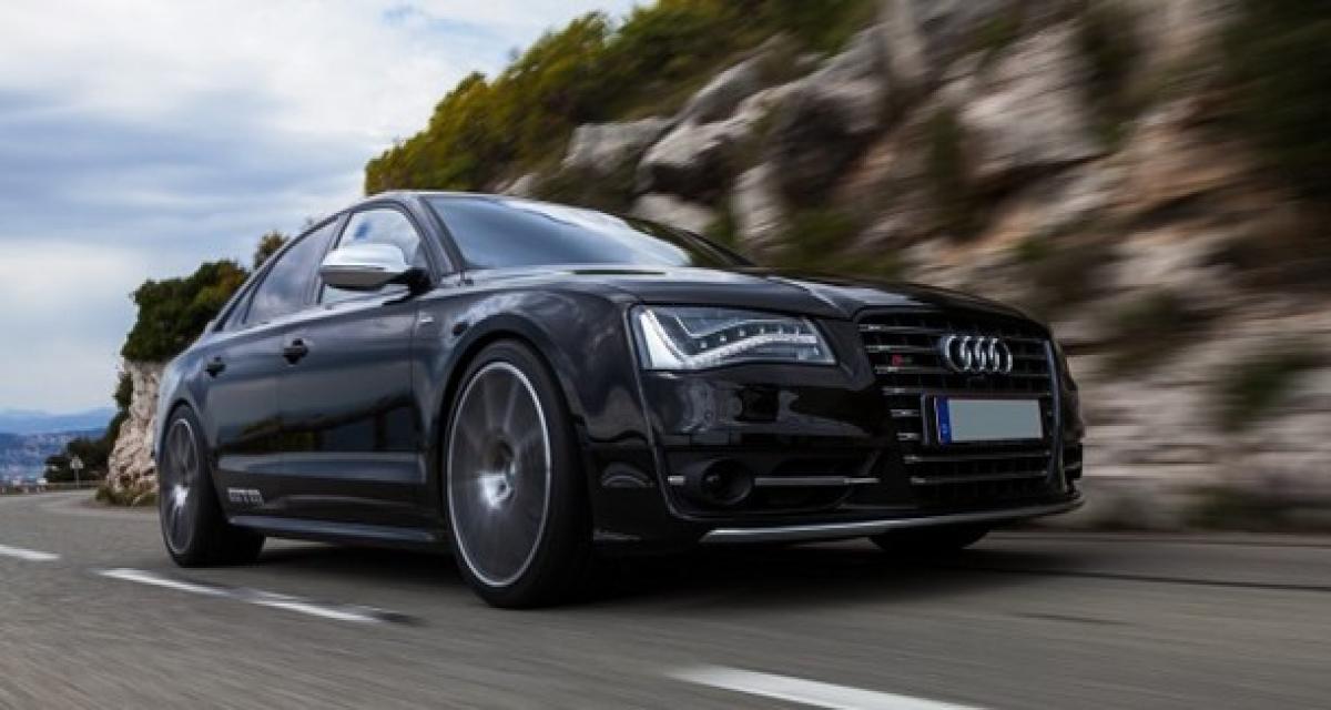 Dans les faits et les chiffres, le V8 4.0 Biturbo TFSI s’envole. Le programme qui coiffe l’offre garantit 650 ch et 800 Nm quand une S8 stock culmine à 520 ch et 650 Nm. Le super porte-drapeau affiche moins de 4 s pour passer de 0 à 100 km/h quand sa vitesse de pointe débridée pousse à 293 km/h (contre 4,2 s dans l’exercice du 0 à 100 km/h et une v-max régulée à 250 km/h).