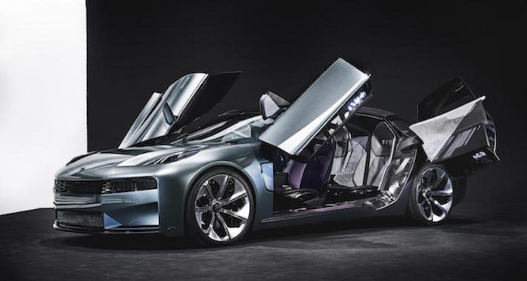 Ces photos prises par un photographe de mode suédois et commissionnées par le constructeur chinois dévoilent une berline qui pourrait annoncer la future 02 déjà surprise lors de tests routiers. Le concept-car photographié est équipé de portes en élytre lui conférant un look très futuriste qui ne verra jamais le jour en production. L’habitacle futuriste alterne matériaux gris et mauve et reçoit, bien entendu, une instrumentation digitale et un toit panoramique.