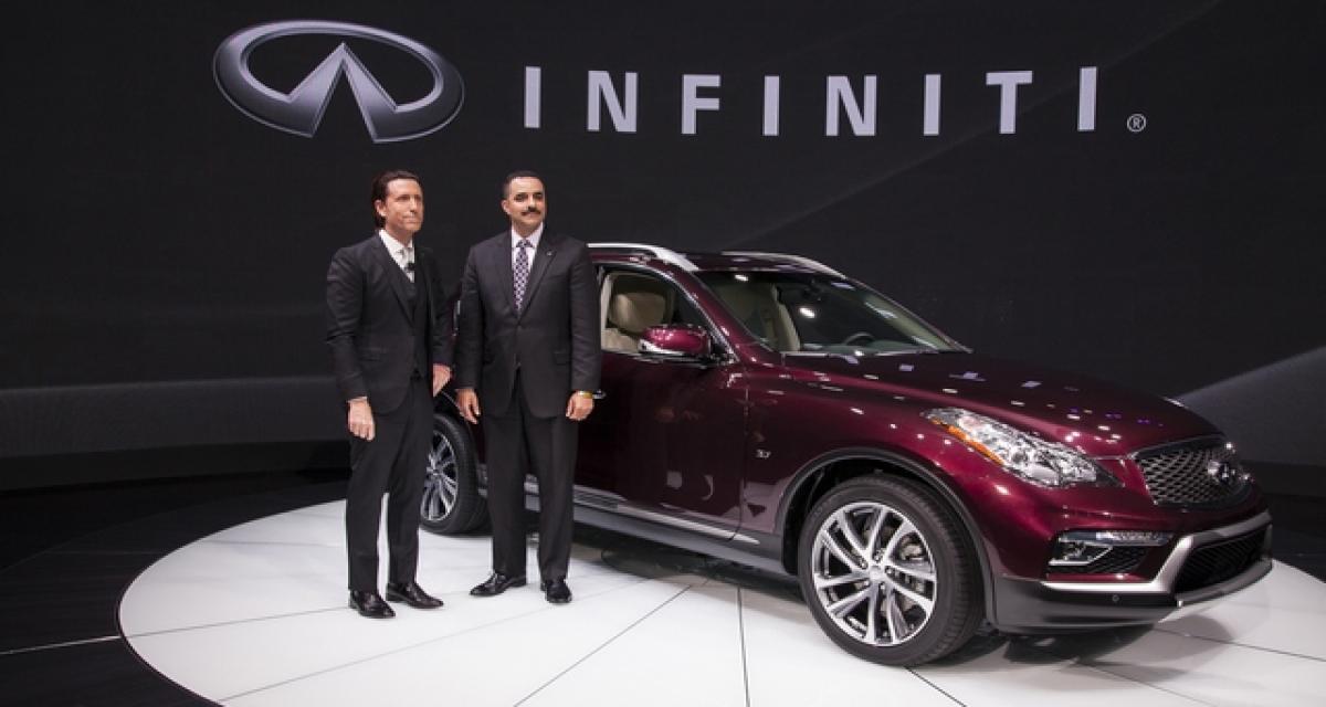 Reprenant certaines particularités cosmétiques vues sur les Q50 et Q70, le crossover adopte une face avant retouchée entre calandre, bouclier et feux diurnes à leds ou antibrouillards à leds. De nouvelles jantes de 19″ sont également annoncées.