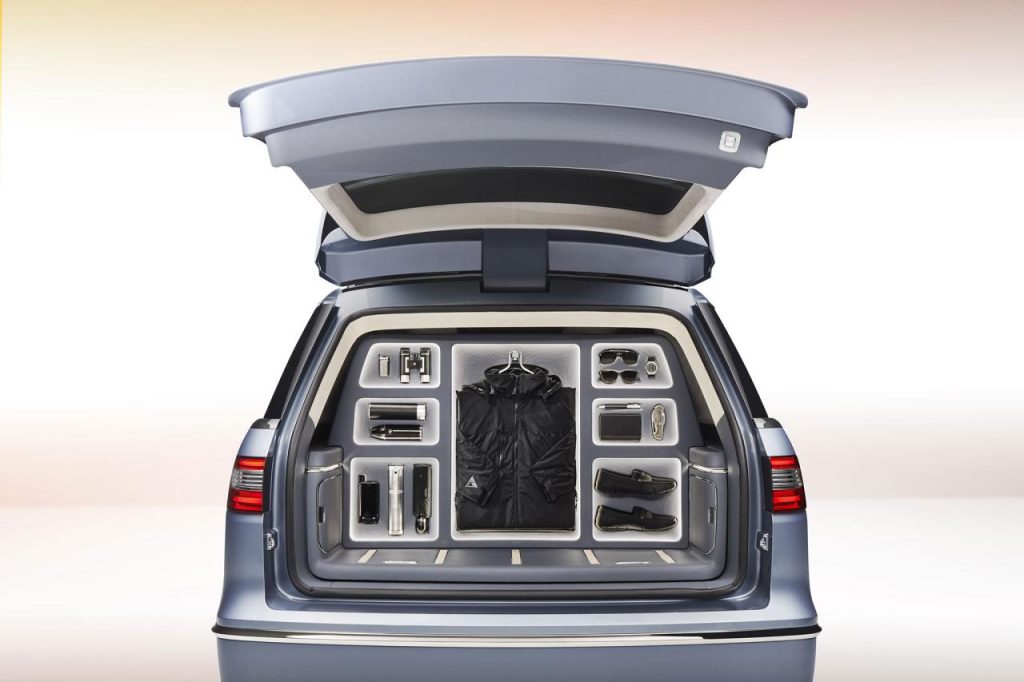 Caractéristique intéressante, le Lincoln Navigator profite de la possibilité de remplacer le rétroviseur intérieur par une caméra pour implanter une cloison fixe entre l’habitacle et le coffre. L’ensemble est ici aménagé façon dressing, mais permet d’envisager un espace pour les bagages sur toute la hauteur du véhicule, et entièrement clos.