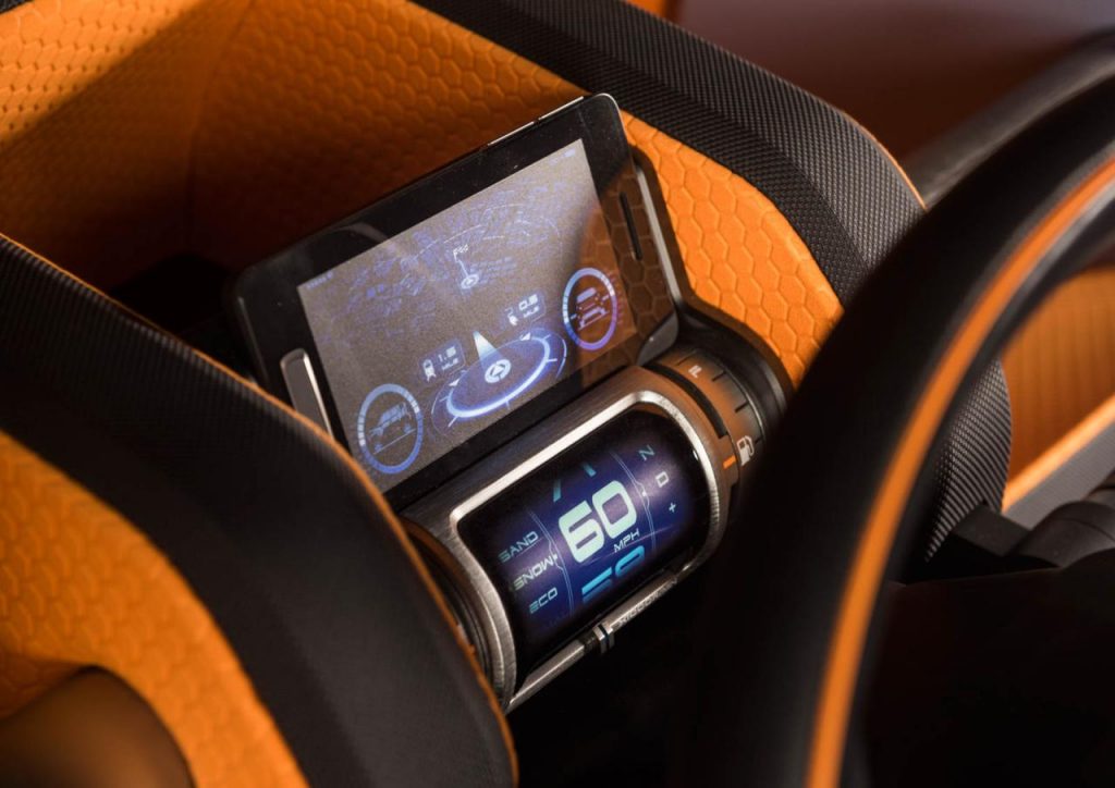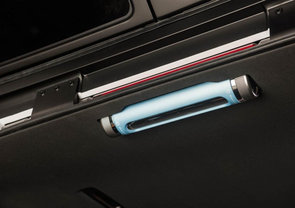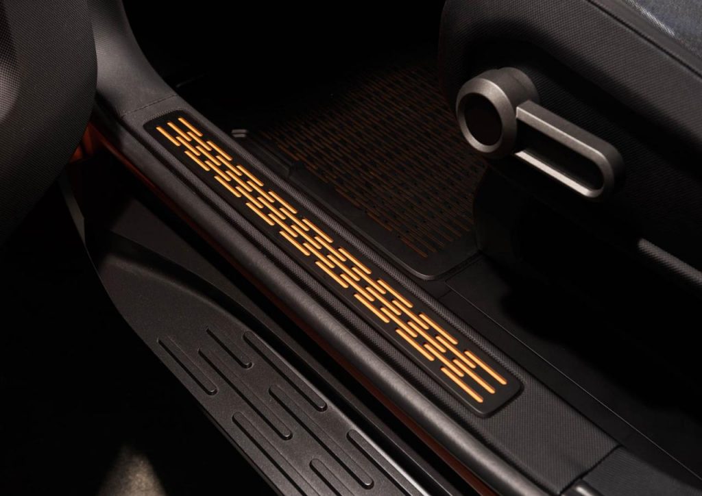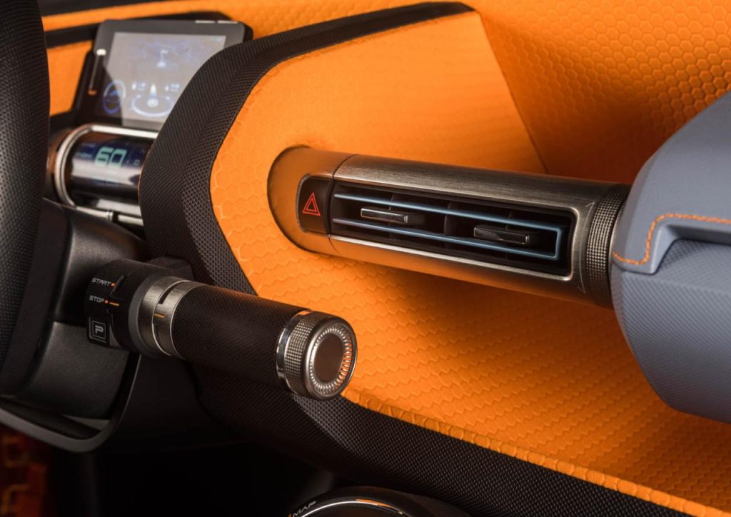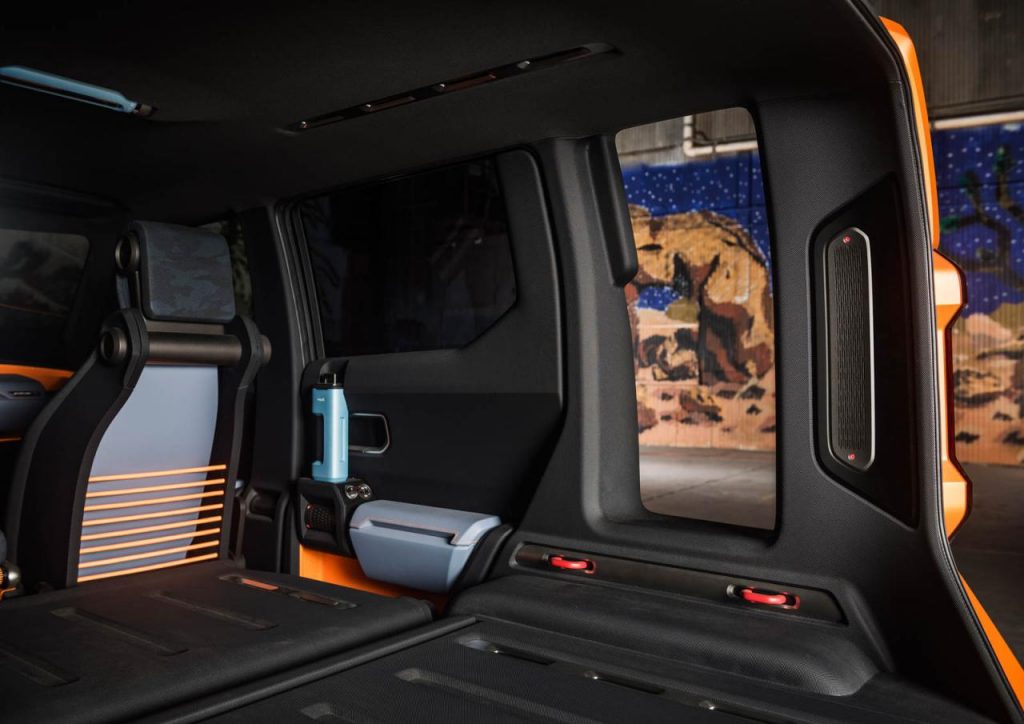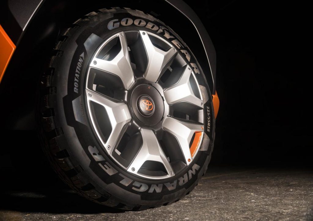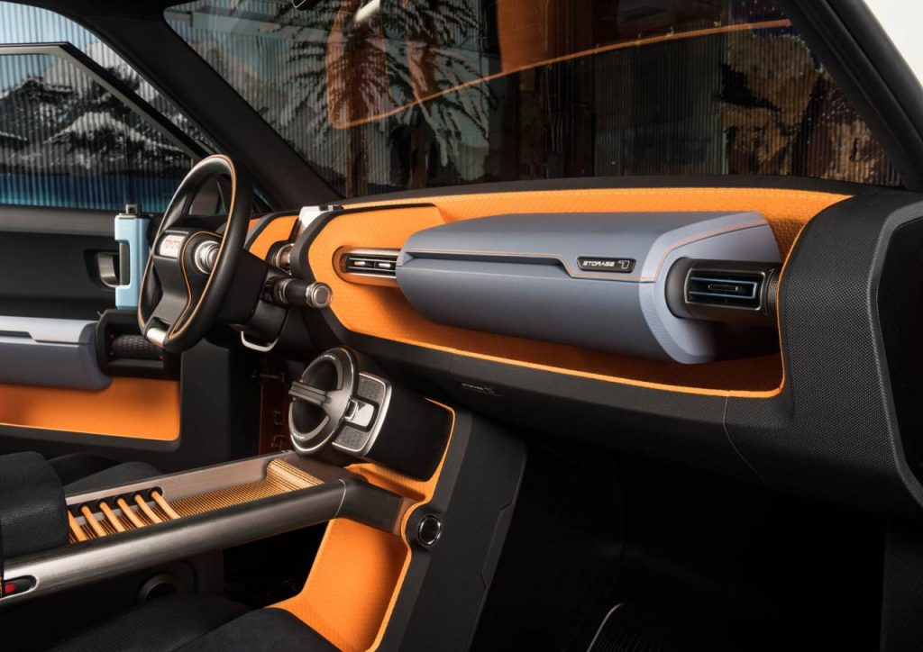Les designers ont eu la bonne idée de concevoir un hayon arrière innovant qui peut s’ouvrir comme un hayon traditionnel (mode « outdoor ») ou comme deux portes battantes d’un utilitaire (mode ville). Il suffit de tourner une poignée rotative sur la partie gauche du hayon. Il fallait y penser. La partie arrière embarque également des prises électriques pour brancher des équipements de camping tandis qu’un sac de couchage North Face prend place entre les sièges avant. Le FT-4X est même équipé de compartiments chauffés et refroidis pour y stocker de la nourriture. Enfin, le rétroviseur côté conducteur intègre une caméra GoPro.