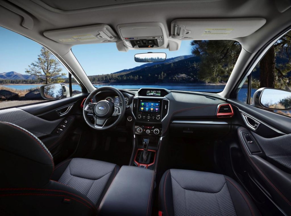 À l’instar des dernières nouveautés de la marque, l’intérieur du nouveau Forester monte d’un cran et reçoit de nouveaux sièges avant, un nouveau frein de stationnement électrique et un nouveau système de climatisation automatique. Toutes les versions disposent d’un système de climatisation automatique (bizone sur les finitions huppées), et de sièges avant chauffants. Les sièges arrière peuvent désormais être chauffants en option. Côté infodivertissement, le Forester offre deux tailles d’écran, 6,5 ou 8 pouces, ainsi que la compatibilité Apple CarPlay et Android Auto sur toutes les versions.