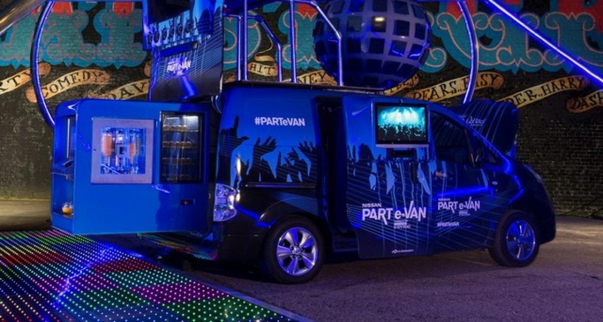 Cette version, baptisée PART e-VAN, permet de découvrir un e-NV200 transformé en discomobile. L’engin hérite par exemple d’une boule disco à panneaux solaires située sur le toit pour alimenter le véhicule, d’une ne cabine DJ sur le toit avec système audio et Silent Disco ou encore d’un dancefloor illuminé de LED à l’arrière du véhicule.