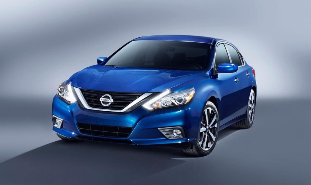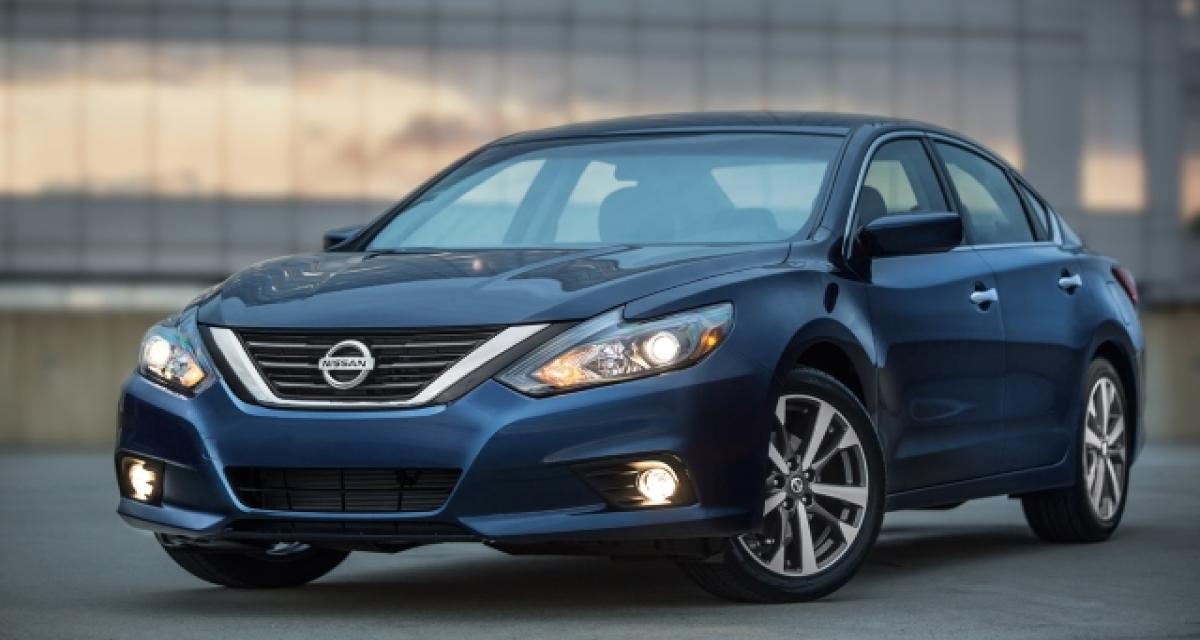 Pour son face lift 2016, l’Altima abandonne la calandre entièrement entourée de chrome pour une version avec le V-Shape (ou banane chromée). Les feux sont également modifiés, touchent la calandre et intègrent la signature lumineuse (boomerang) de Nissan comme sur le Rogue/X-Trail par exemple. Le bouclier est plus marqué que la version précédente.