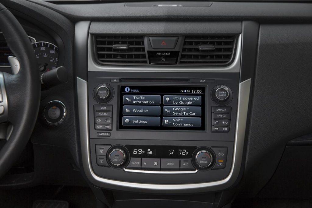 En plus de cela, Nissan remet à niveau quelques équipements comme les fameux sièges zéro gravité (meilleur soutien pour moins de fatigue), un volant légèrement revu ainsi que…des porte-gobelets redessinés pour accueillir des mugs conformément aux demandes client (sic.). Mais c’est surtout une nouvelle déclinaison qui est ajoutée par Nissan à son Altima. En effet, à côté des 2.5, 2.5 S, 2.5 SV, 2.5 SL et 3.5 SL déjà au catalogue, on trouve pour 2016 une version 2.5 SR et 3.5 SR. Cette finition sportive dispose de jantes en alliage de 18 pouces chaussées de Dunlop 235/45, de feux fumés, de palettes au volant, d’un spoiler sur la malle arrière, de quelques touches à l’intérieur et de réglages de suspension spécifiques.