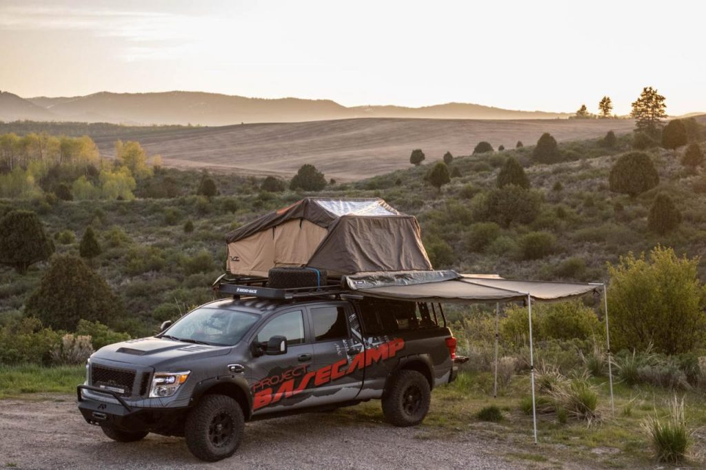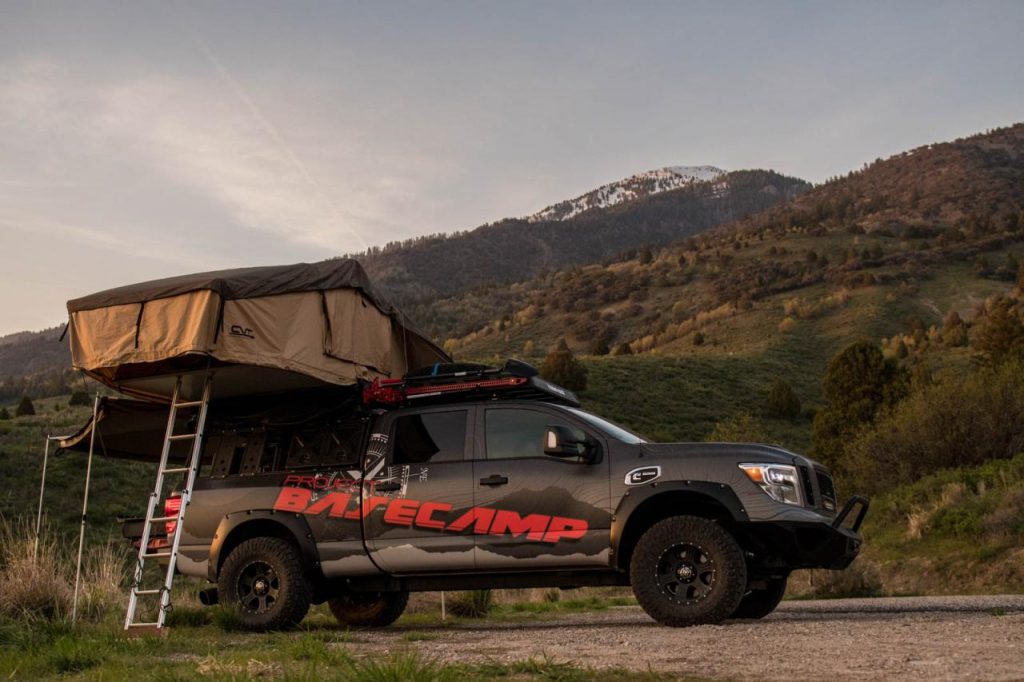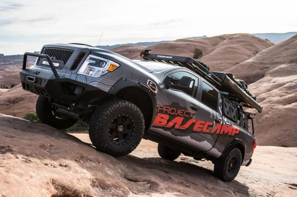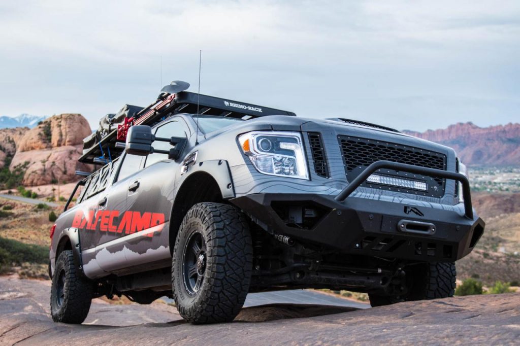 Le Titan XD PRO-4X Project Basecamp n’est pas destiné à rester dans les cartons puisque tous ses accessoires sont d’ores et déjà disponible à la vente. Les jantes de 17 pouces reçoivent de larges pneus Nitto Ridge Grappler que rien ne semble pouvoir arrêter tandis que la garde au sol a été augmentée de près de 20 centimètres. Les boucliers avant et arrière se parent de protections inédites et un treuil Zeon 12-S Winch est désormais incorporé dans le bouclier avant. Enfin, le Titan XD PRO-4X Project Basecamp accueille sur son toit une tente de marque CVT.