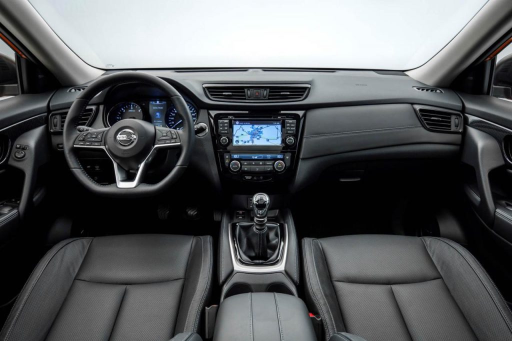 À l’intérieur, les changements concernent principalement l’arrivée d’un nouveau volant à méplat et d’une planche de bord plus cossue côté passager avec l’apparition d’un panneau en cuir sur la version la plus huppée Tekna. Autre exclusivité sur cette dernière, le volant en cuir est désormais chauffant et le système audio est un système Bose avec huit parleurs. Enfin, le système de navigation/d’infodivertissement NissanConnect reçoit une nouvelle interface et la radio numérique DAB est de série.