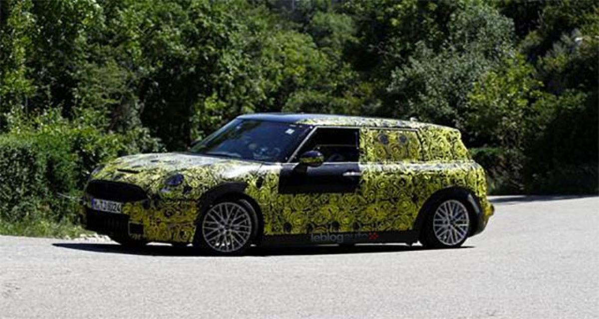 On devine également un grand toit panoramique, comme c’était le cas sur le concept. La traditionnelle prise d’air dans le capot et les grands jantes de 18 pouces indiquent elles une version S. La version de série de la Mini Clubman devrait être officiellement présentée à l’époque du Mondial de Paris.
