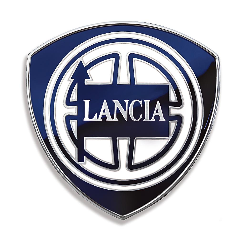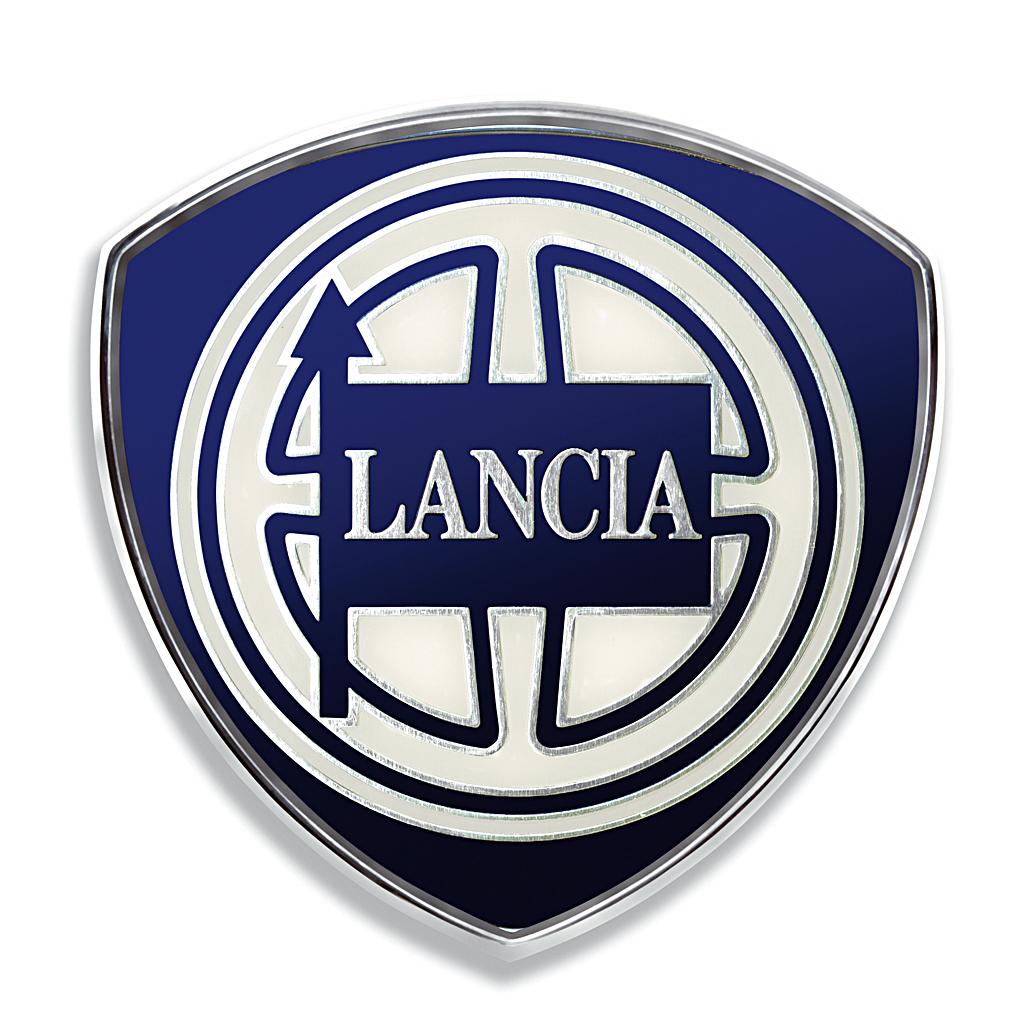 Dès 1911, la marque Lancia se dote d'un logo autre que son simple nom. Ce logo est composé d'un volant à quatre branches, affublé d'une lance avec Lancia marqué sur un drapeau. Le bleu est déjà la couleur du logo. En 1929, un bouclier fait son apparition en fond du logo. Le logo va évoluer au fil des années tout en conservant peu ou prou le même aspect.