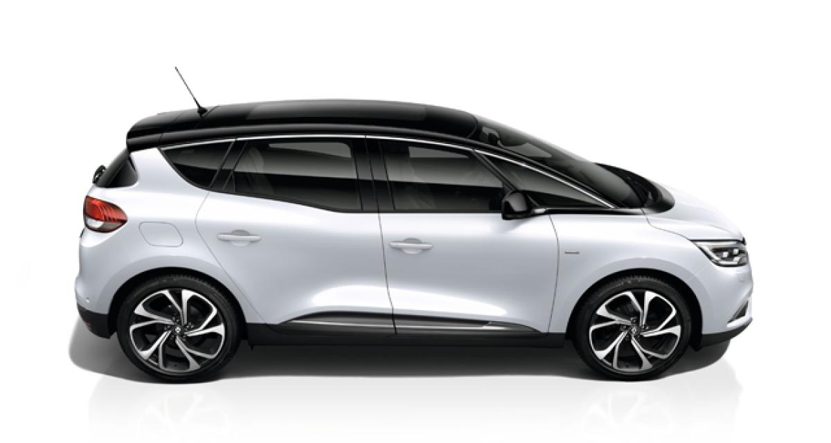 Le nouveau Renault Scénic arrivera dans le réseau Renault France à l’occasion des journées portes ouvertes du 13 au 17 octobre 2016. Il se décline en quatre niveaux de finitions : Life, Zen, Business, Intens mais Renault lui offre une Edition One de lancement. Sur base de version Intens, cette série limitée est proposée en teinte Blanc Nacré toit Noir. Elle s’habille d’une sellerie cuir gris clair dotée d’appui-têtes spécifiques, de sièges avant chauffants & massants à réglages électriques. Les sur-tapis disposent d’une ganse grise, le seuil de coffre est en aluminium, les jantes sont également spéciales. Plusieurs équipements complètent cette série limitée tels que l’Easy Park Assist, le système audio Bose à 12 haut-parleurs ou bien encore le toit verre panoramique.