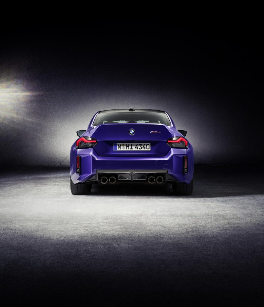 Ce qui se voit un peu, ce sont certaines pièces en plastique renforcé de fibres de carbone (CFRP) qui permet d’alléger les pièces en conservant la rigidité. Cela ne remplace pas du tout carbone, c’est c’est moins onéreux à mettre en oeuvre. Ici, BMW passe les coques de rétroviseurs, le toit, mais aussi le diffuseur arrière. Le capot de la malle arrière est également en CFRP, mais peint. Tant qu’on est à parler de peintures, quatre teintes sont disponibles pour cette nouvelle BMW M2 CS :