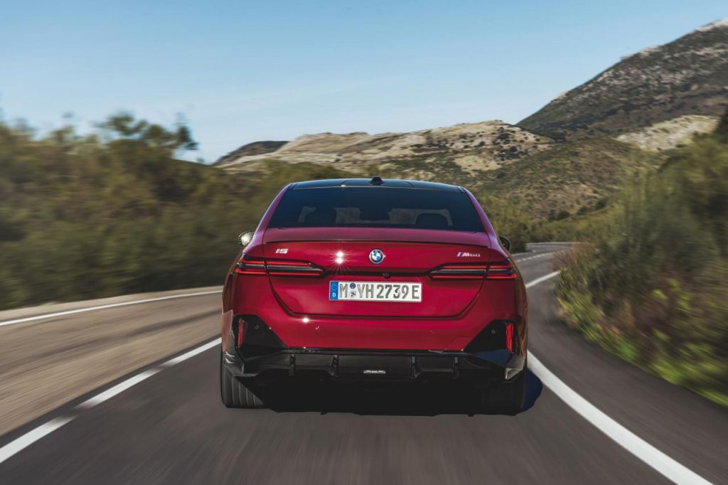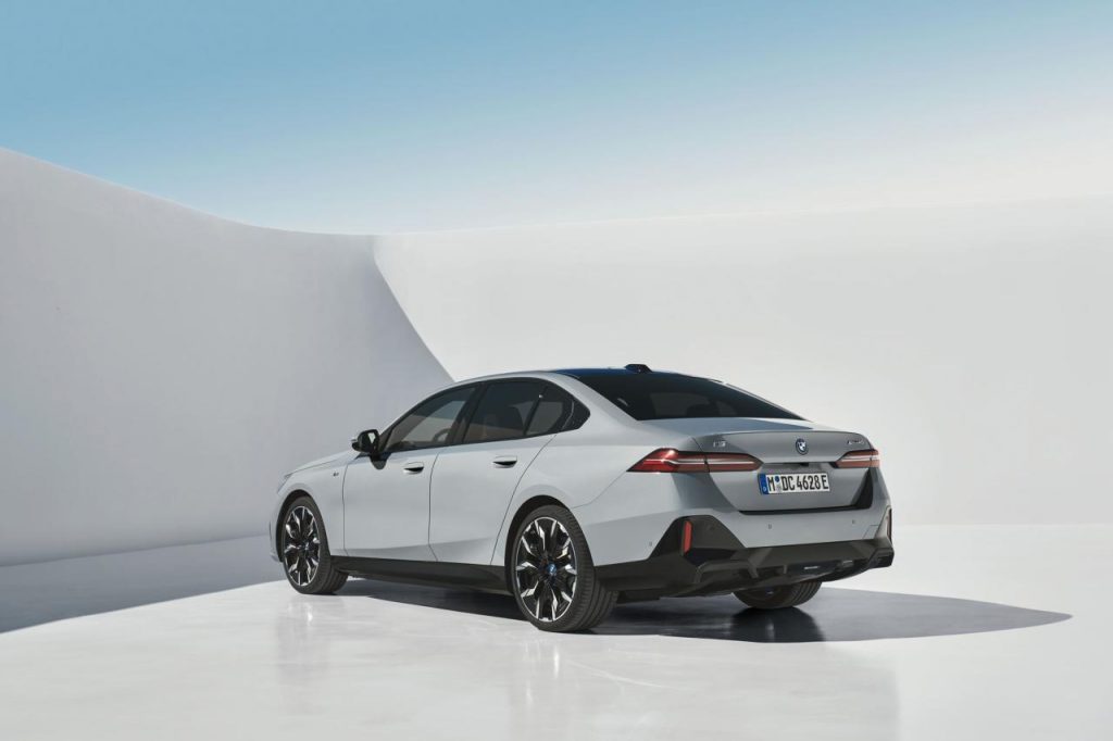 C'est d'ailleurs une tendance globale sur cette nouveauté, les lignes plutôt douces et arrondies sur la G30, se tendent sur la G60. Les feux arrière sont aussi plus tendus, et plus fins. BMW conserve l'idée des deux lignes lumineuses et des feux très horizontaux qui se poursuivent sur la malle arrière. Comme à l'avant, le bouclier dans la version i5 a de grandes parties noir brillant, comme les bas de caisse. Histoire d'alléger la ligne qui a grossi ?