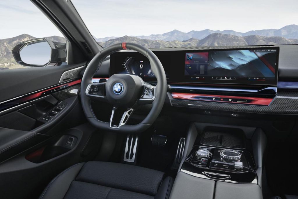 Cette BMW Série 5 comme on le disait sera aussi disponible avec des moteurs thermiques. En France au lancement, on aura du 4 cylindres avec la 520i de 208 chevaux (essence) mais aussi la 520d et 520d xDrive de 197 chevaux (Diesel). Au printemps 2024, deux variantes PHEV (hybrides rechargeables) seront lancées, mais aussi un 6 cylindres en ligne (L6) Diesel. Une autre version 100% électrique, intégrale, devrait également arriver "en 2024".
