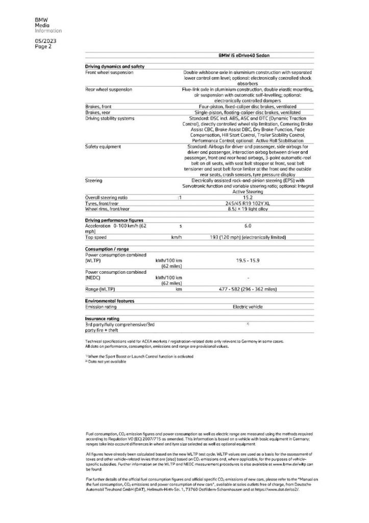 | BMW i5 eDrive40 | Electrique | 76.200 € | 80.250 € |