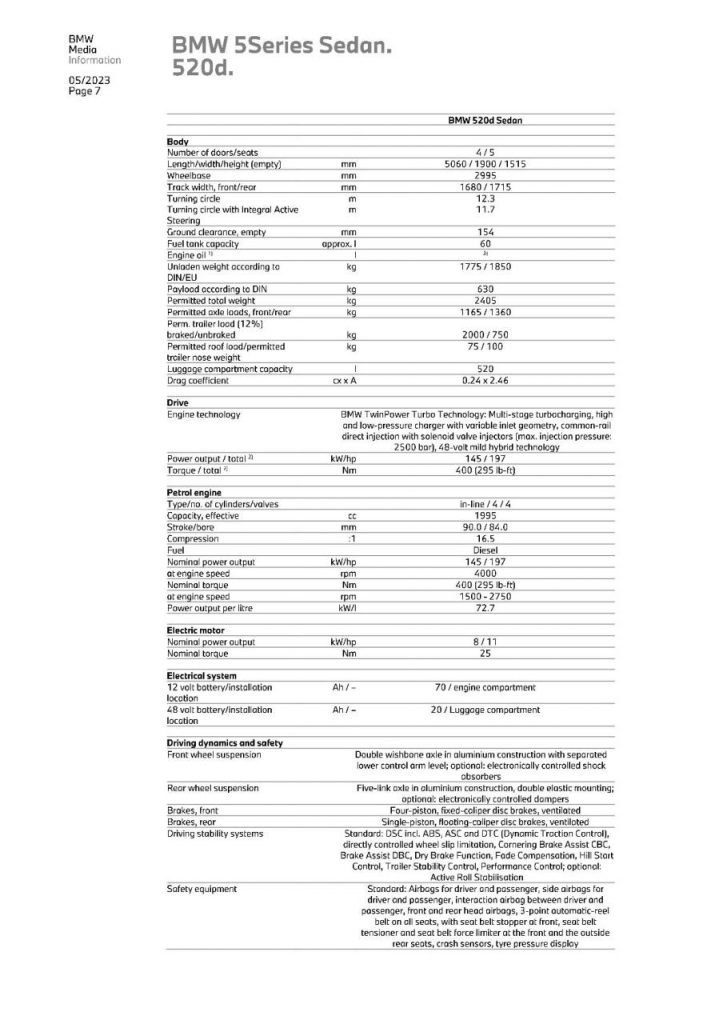 | BMW 520d | Diesel | 65.100 € | 69.150 € |